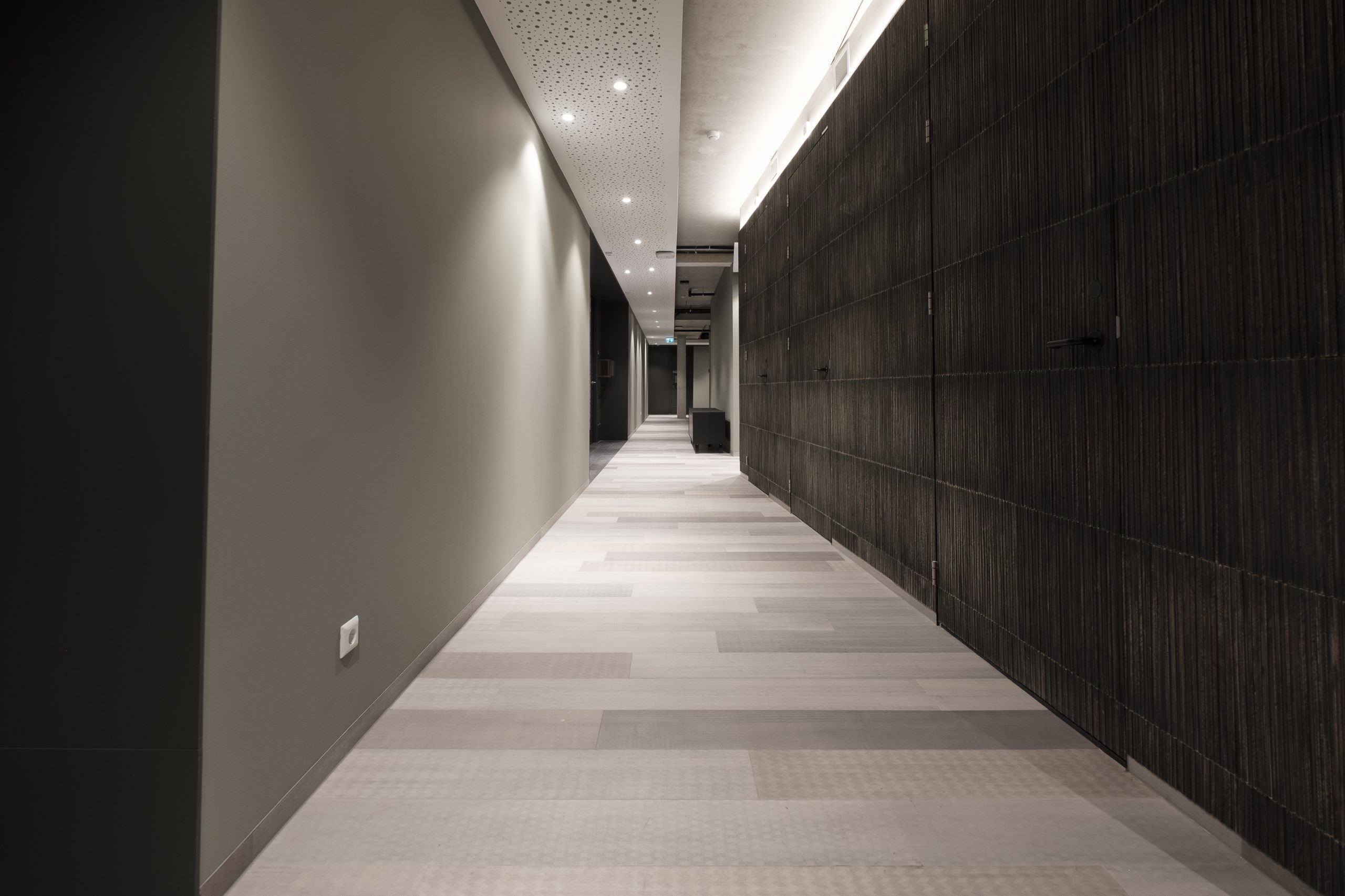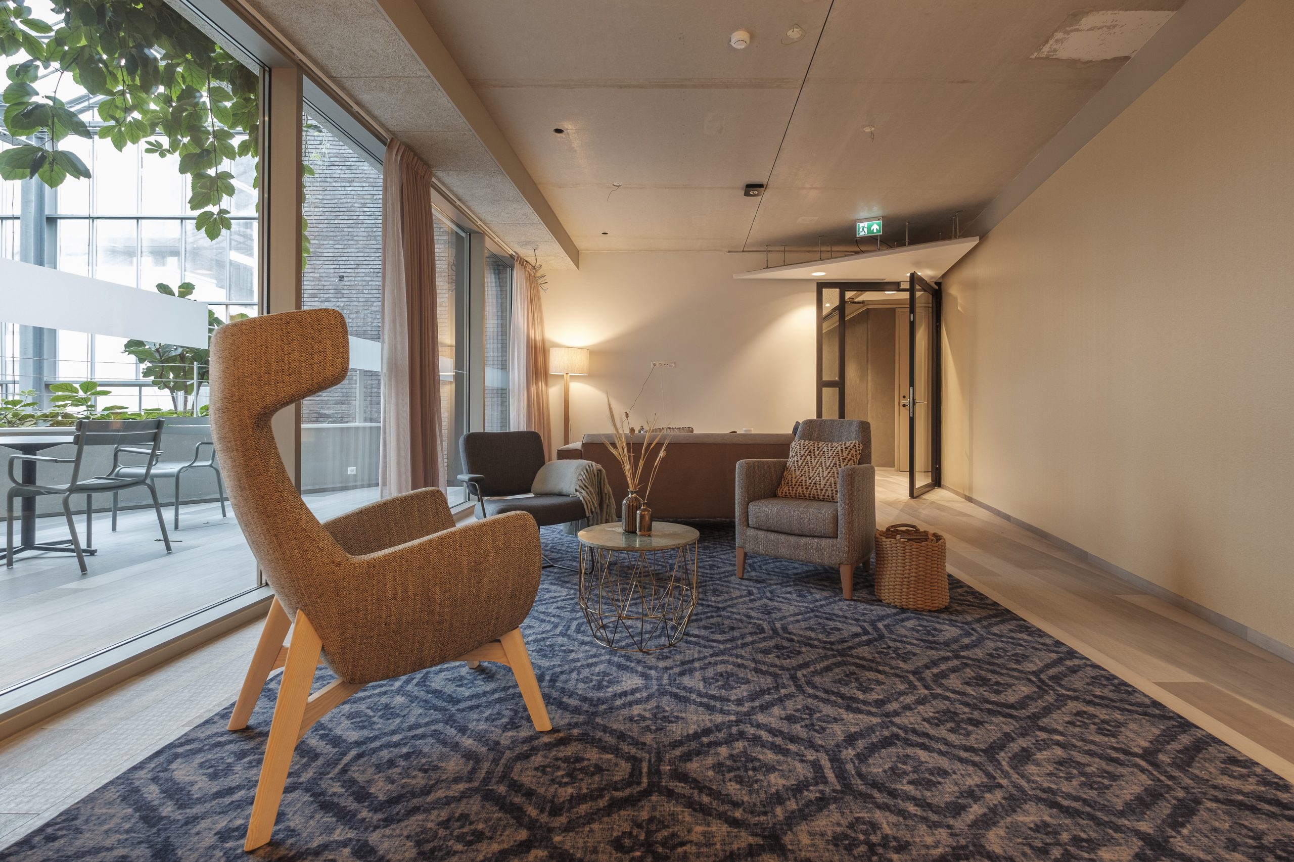 In de overige ruimtes (kantoren en algemene ruimtes) van het Cordaan Zuidoever project hebben we gekozen voor tapijttegels, die niet alleen zorgen voor een warme uitstraling, maar ook voor extra geluidsdemping. Dit is belangrijk voor een comfortabele leef- en werkomgeving, waar rust en stilte essentieel zijn. De tapijttegels zijn eenvoudig te onderhouden en bieden de mogelijkheid voor flexibiliteit in design en indeling. Deze keuze maakt het project tot een ideale oplossing voor de specifieke behoeften van zorginstellingen.
